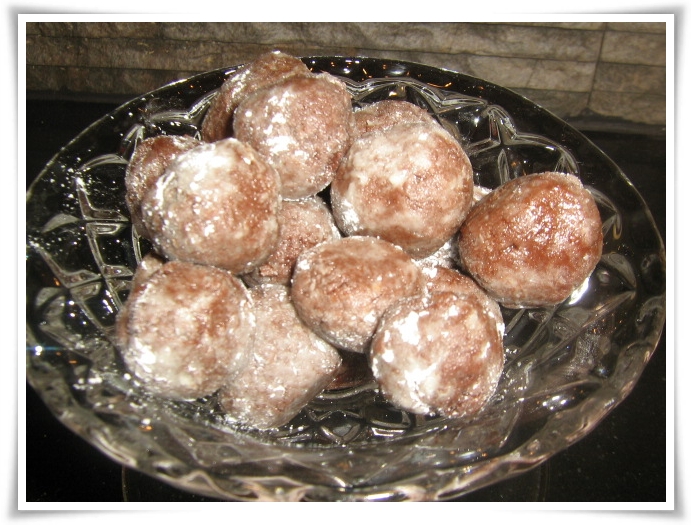 Chokladen och smöret smältes i vattenbad, varefter man blandar i glögg, krossade kex och florsocker. Vispa sedan massan för hand med en vanlig träslev för att få den luftig, och rulla lagom stora bollar (receptet räcker till någonstans mellan 4 och 16 bollar beroende vilken storlek man betraktar som lagom). Efter ca 10 min i kylen kan man rulla bollarna i florsocker. Gör man det genast riskerar man att florsockret smälter. Då blir resultatet liksom lite mer grådaskigt och lite mindre som vacker pudersnö.