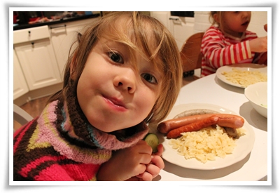 Och visst, somliga korvar har ju fler E än enervera och det är väl inte så bra, men det ska ju inte alla korvar behöva lida för. Igår hade vi korvfest på Tildas enträgna begäran. Vi har det titt som tätt, och på så vis har barnen lärt sig att korv inte behöver vara sladdrig, skinnfri ”vi kallar det korv för att den här potatisen en gång pratade med en gris”-korv. Nä, när vi går in på affären för att köpa korv förkunnar ungarna glatt att det minsann skulle smaka med lite braaaatwurst i utbudet.
