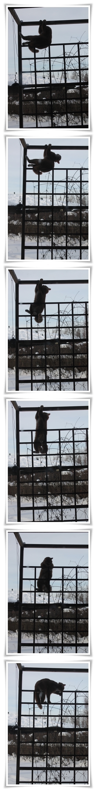 Eller så kan man sedan man städat omkullvälta pennor, tillfångatagna Barbies och söndertuggade pärlpåsar och återplanterat krukväxter som varit obetänksamma nog att hoppa ut i vägen för katternas midnattsrally sätta sig vid bordet och ta en kopp kaffe och bjudas på en våghalsig show.
