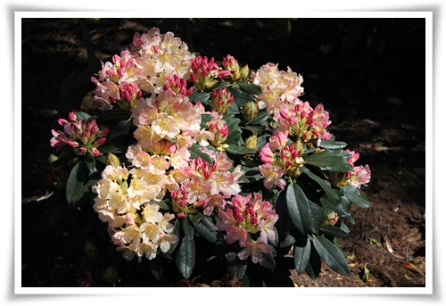 Och jo, mina egna rhododendron har börjat blomma också, men i jämförelse med de femmeterskolosser som fanns i Danmark är mina pyttiga halvmetersplantor inte så imponerande.