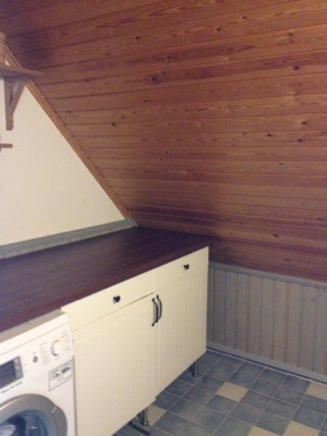 Vi har hållit på ganska länge med att renovera huset. Det är ju liksom så när man har hus, det blir inte färdigt förrän det är dags att börja om. De närmaste veckorna kommer vi att få nytt golv och nytt innertak på övervåningen. Det gamla innertaket var förvisso ett i teorin mycket vacker trätak, men i praktiken sög det upp allt ljus inom en tio meters radie, och förvandlade det till brunmurrigt depressionsstoff. Eftersom det helt enkelt är för komplicerat och tidskrävande att slipa och måla ett tak spikar vi utan ångest ny panel ovanpå den gamla. Här är några före-bilder på mitt arbetsrum och badrummet.