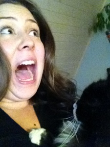 Gammelkatten vill ha kärlek. Då gör det ingenting om jag vill läsa bloggar, för han kan ligga på mitt ansikte och vänta tills jag har förstått att det enda syftet med mitt liv sedan jag fyllde på matskålen är att gosa med honom. Skulle jag exempelvis försöka fotografera kvällsgoset och därmed inte klia honom med båda händerna är det förstås inte mer än rätt att jag finner mig själv med i runda slängar trehundrasjuttiotvå vassa klor i halsen.