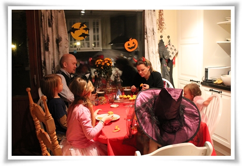 Egentligen tycker jag inte om Halloween. Jag vill ha det sagt, för det är en principsak. Halloween är amerikanskt kommersiellt skräp, utan förankring i våra traditioner. Men jag och Fru B har redan i flera år haft fest tillsammans med barnen på Halloween, och med tanke på hur grått och trist det är den här tiden på året är det aldrig fel att göra det lite festligare – alla anledningar är bra anledningar liksom. Så i fredags fylldes huset av häxor, kattor, spöken och prinsessor.