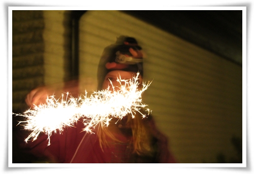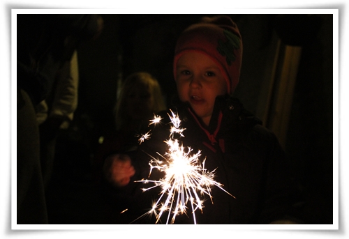 Som avslutning går vi alltid ut och tänder flera askar tomtebloss (sprakastickor, som det kallas här).