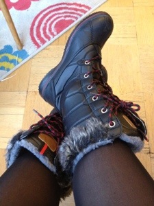 Jag har för första gången sedan jag började få betala mina egna grejer gjort ett förståndigt skoinköp. Tänkt att i sånt här vinterväder behövs ett par tjocka, stadiga boots med rejält foder istället för åh härrigud det där är de sötaste skor jag någonsin sett och snön smälter säkert bort snart ändå. Det känns väldigt okaraktäristiskt, som att kompromissa bort en del av sig själv. Men jisses vad varmt och skönt det är för fötterna!
