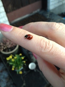 Men i ett soligt hörn av trädgården, där börjar nyckelpigorna sakta vakna till liv, till min och barnens oförställda glädje!