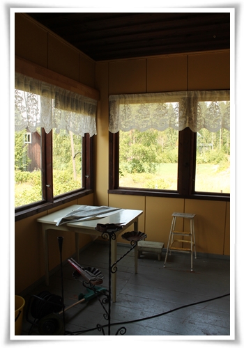 Så snart vi har lyckats sälja vårt gamla hus (och det är lite kul att det ”gamla” huset är 80 år yngre än det nya, men ni fattar), planerar vi att lägga nytt tak på Pellas, och duschrummet behöver också renoveras. De två sakerna står överst på listan av stora kostsamma projekt just nu. Tills dess fixar vi sådant vi kan. Flyttar lite möbler. Sliter upp lite plastmattor för att kolla vad som finns under (mer om detta en annan gång) och pimpar verandan. Så här såg verandan ut när vi tog över. Om ett par dagar ska jag återkomma med förändringen. Tills dess är det bara jobbajobbajobba…