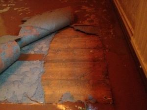 Sliter upp golv. Bara för att vi (läs: jag) är så satans nyfiken på vad som finns under. I vad som ska bli TV-rummet finns det ett plankgolv. I köket finns det ett undergolv som jag måste få veta hur isolerat det är innan jag fortsätter kofota upp linoleum och spånskivor.