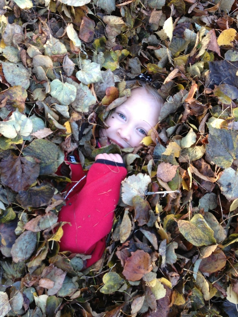 Och att vi aldrig kommer att kunna kratta ihop alla löven i denna gigantiska trädgård gör inte ett dugg när den hög vi fick ihop var till så stor glädje för små lövhögsdykare.