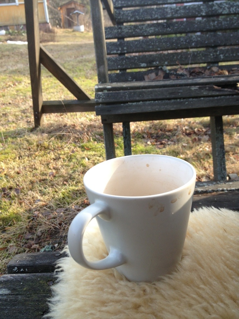 Det är dagar som den här, dränkta i solsken, våraningar och fågelkvitter, som jag förstår vilken lisa för själen det är att ha tagit steget och flyttat ut på landet. Kaffe, fårskinnsfäll, en knakig trägunga och vårt skruttiga hus.