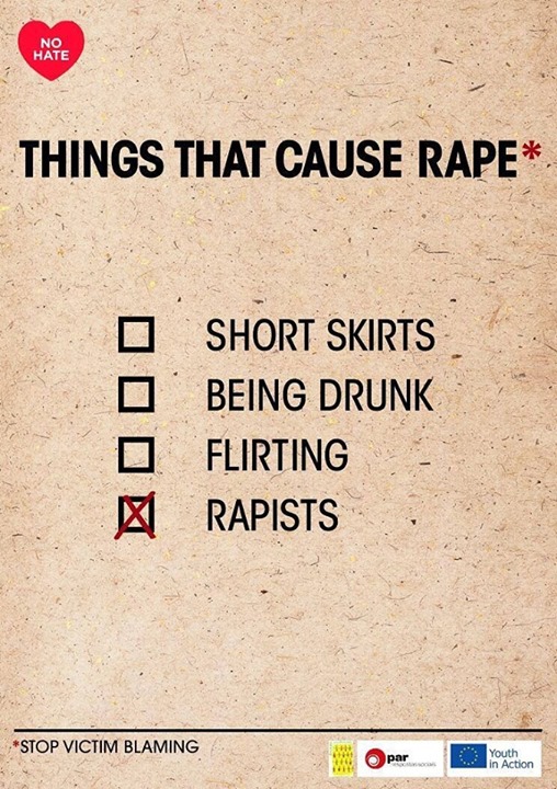 Och om något händer kontrolleras det att vi har förstått vårt ansvar. Vad hade du på dig? Hur mycket hade du druckit? Hur mycket kämpade du emot? Varför skrek du inte högre? Kände du dig rädd när han höll en pistol mot ditt huvud?