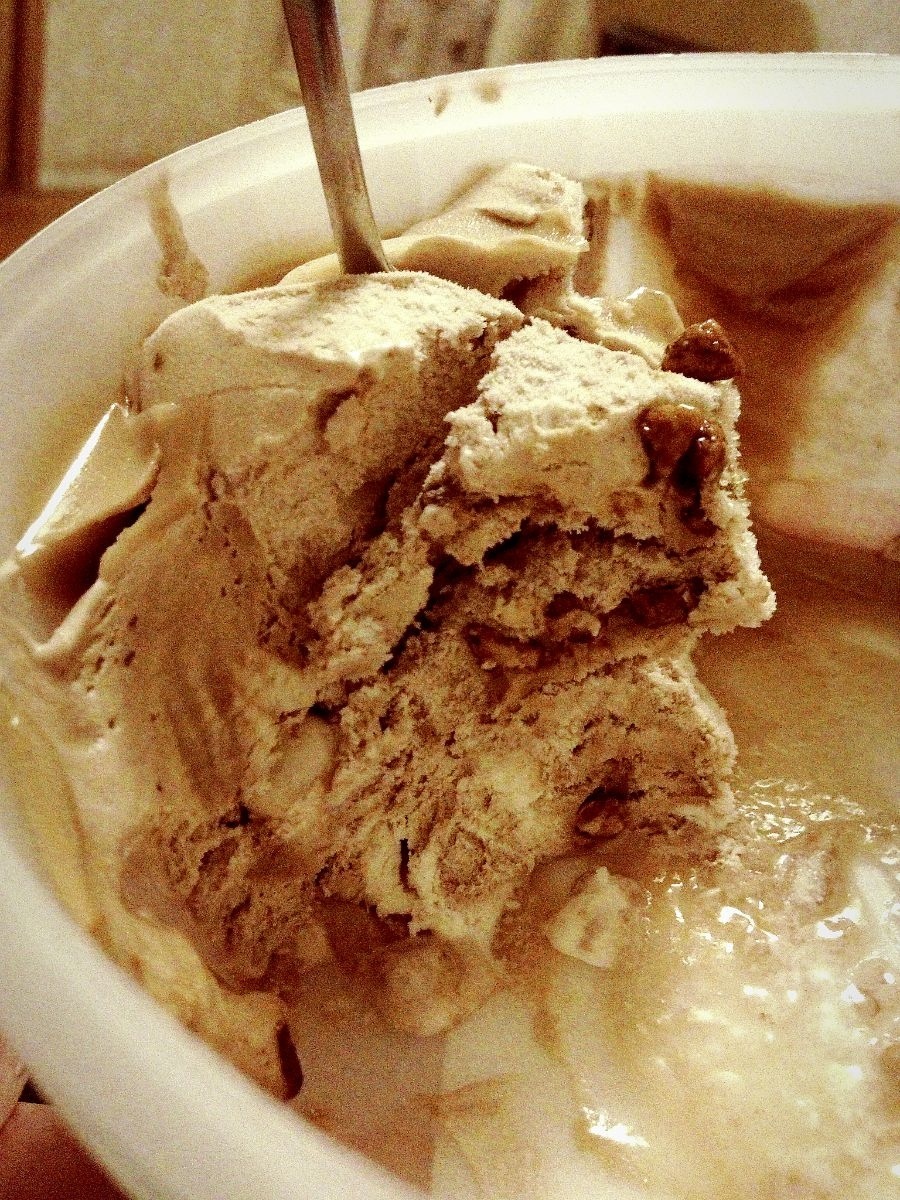När jag kom hem åt jag glass direkt ur paketet. För att kompensera risken att jag motionerat på rundan.