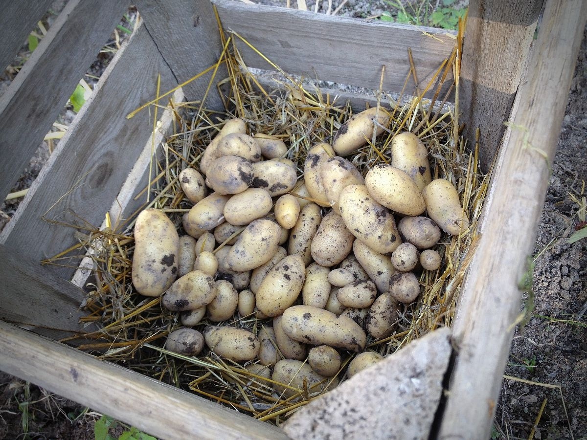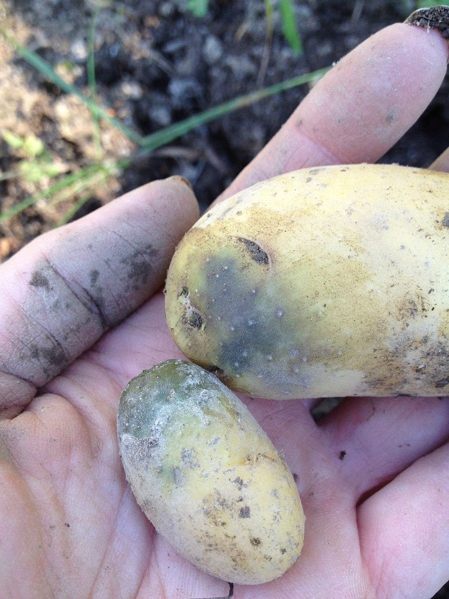 Samtidigt förstår jag hur beklämmande lite jag kan om potatis. För det första så kom jag förstås inte ihåg vilka sorter vi faktiskt planterade, eller vad de hade för egenskaper så jag har sporadiskt grävt upp av båda sorterna fast den ena var för direktätande och den andra förvaring. För det andra så inser jag allteftersom jag lär mig den hårda vägen att det blir potatis ändå, bara inte lika mycket. Till exempel bör man göra som det står i alla böcker och vända upp mer jord över sina potatisrader. Även om de var på perfekt djup från början kommer regn och annat göra att potatisen inte är lika perfekt nere i jorden efter ett tag och då blir den grön och oätlig. Vi har kastat uppskattningsvis halva potatisskörden direkt på komposten för att den var grön. Det leder mig in på nästa lärdom: ett så stort potatisland som vi anlade är lite i största laget för vår familj. Trots att vi kastat hälften har vi mer än vi kan handskas med.