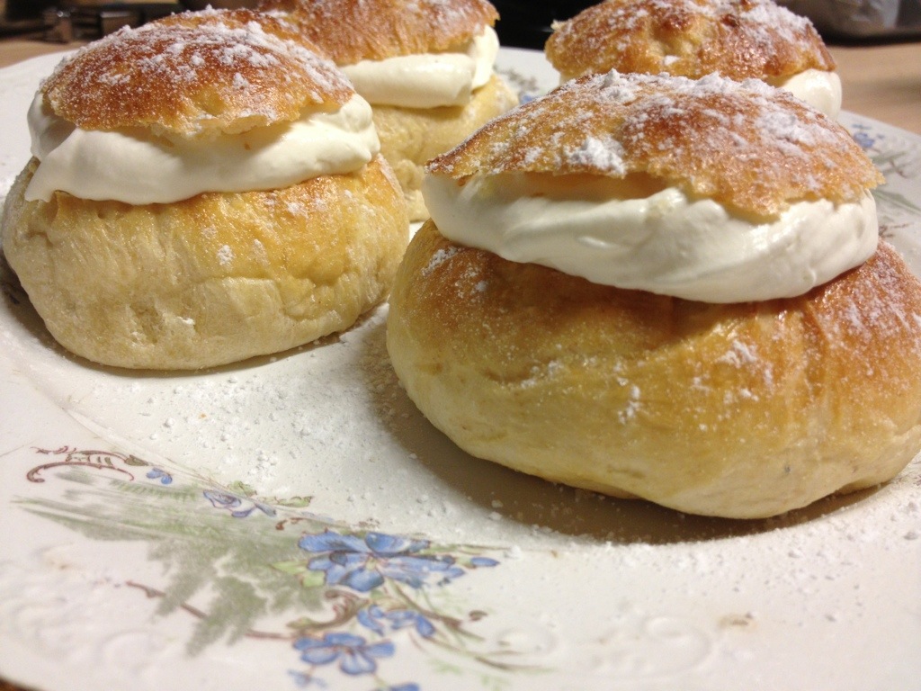 Dina semlor ser annars mycket bättre ut än de jag bakade. Jag kanske inte borde ha låtit dem jäsa i tre timmar. De luktade faktiskt sprit t.o.m. när de var klara…