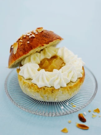 Den där sylt- och gräddfyllda saken är helt enkelt inte en semla, det är en syltbakelse. På det sättet kan jag bortse från det fruktansvärda barabari en ”syltsemla” är. Sen kan jag ju förstå att finländarna inte gillar mandelmasseversionen när det inte är mandelmassa i dem. Jag läste på Primulas (som brukar vara ett bra bageri en gång i tiden innan de gick i konka och blev uppköpta av Perheleipurit) paket: bara aprikoskärnor och e-nummer. Blärk. Men Uudenmaan herkkus var goda:-)