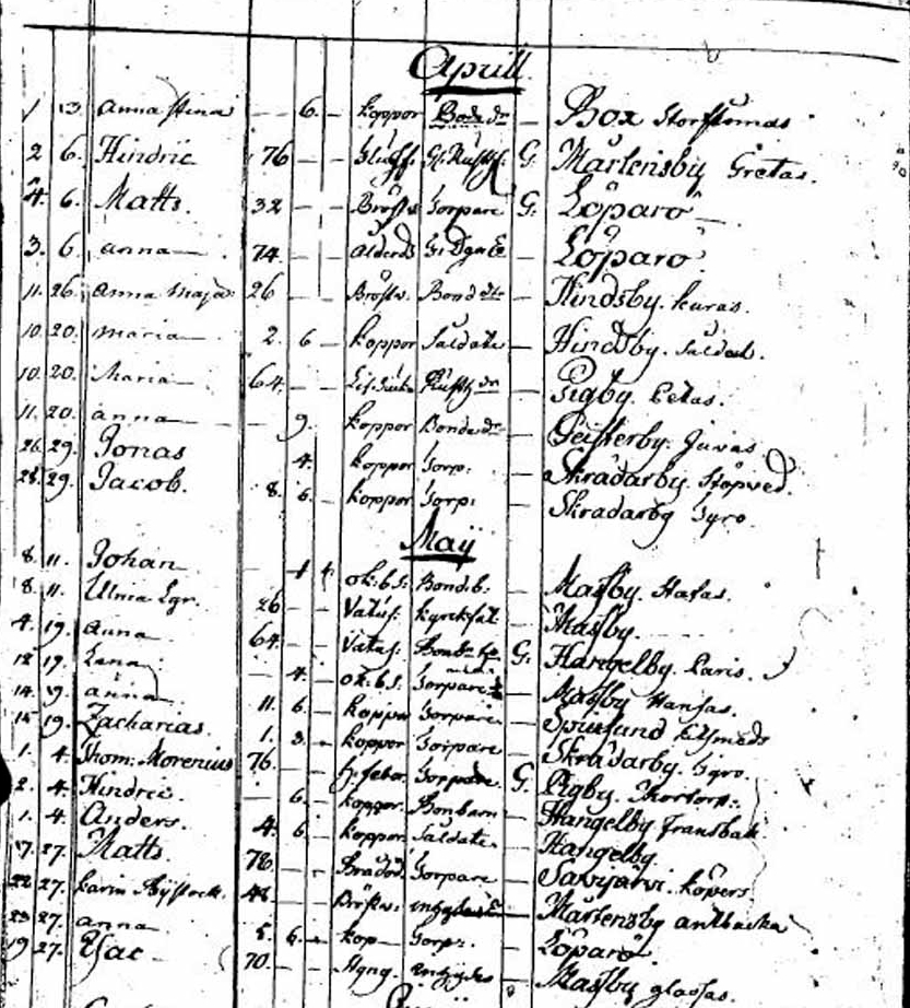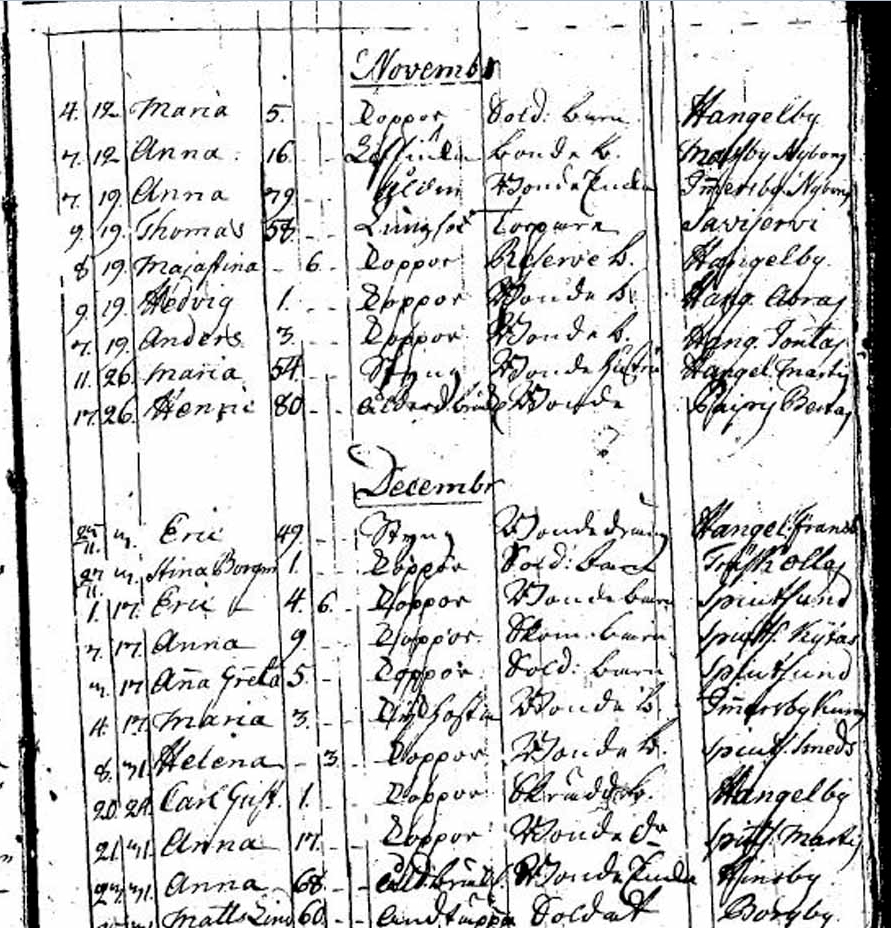 Vägen dit var lång och kantad av ond, bråd död. I kyrkböcker, där prästen antecknade vilka inom hans församling som dött såg det år 1777 i Sibbo ut så här:
