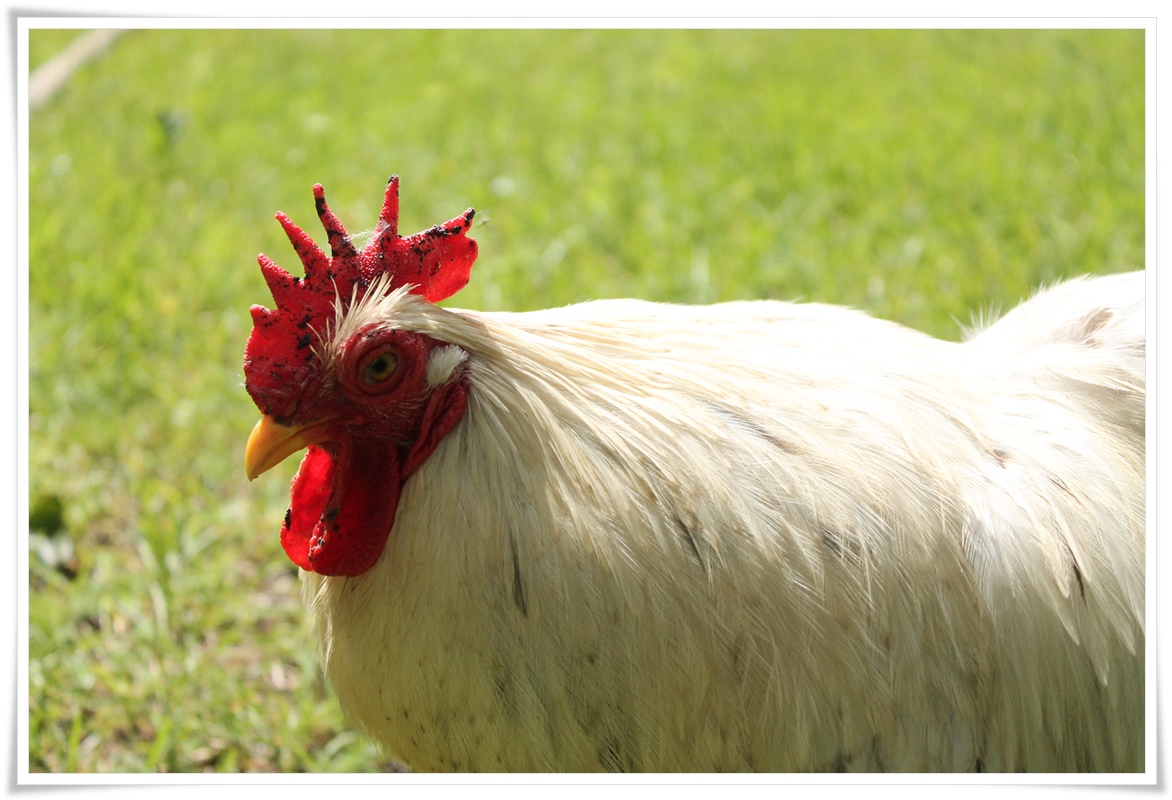 Ja, och så bestämde sig Valio-tuppen för att utföra någon sorts kupp och höll på att ta livet av Enna, tidigare ledartupp. Jag har aldrig sett liknande koncentrerad målmedvetenhet hos fjäderfäna som när Valio tvingade Enna att abdikera. Det fanns ingenting i världen som kunde få dem att tänka på annat än att försöka ta livet av varandra. Hur i hela helvete folk kan arrangera tuppfighter för skojs skulle begriper jag inte, för det fanns ingenting spännande eller sportsligt i det. Bara blod, utmattning och sorg. Hur som helst, Enna klarade sig (med viss hjälp av yours truly) men får inte längre vara med flocken, utan spatserar runt i fritt i trädgården och försöker sortera in alla sorters människor och kaniner och sånt i sin nya flock. I dag höll han på att komma med in i bilen.