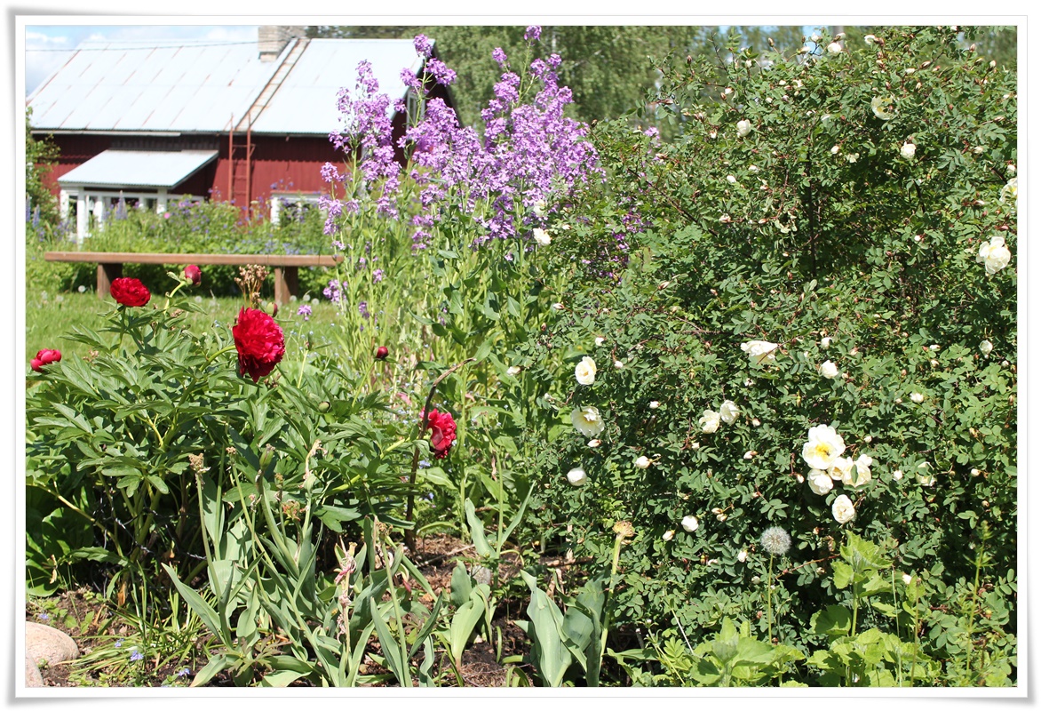 Och i trädgården blommar det så sanslöst vackert. Den pion jag grävde fram ur kirskålen förra året tackar för ljus och gödsel. Midsommarrosen har förtiolv tusen knoppar. Det är nog en av de bästa sakerna med en gammal trädgård tror jag, att när man rensar hittar man allt möjligt spännande som får nytt liv av det arbete man lägger ner. Jämna rader ogräsfri prydnad blir det ju aldrig, men det har aldrig varit min grej ändå. Ja, och så har jag förstås sått lite nytt. Akvilejor är en storfavorit och när jag hittade en sort som heter Petticoat Pink var jag givetvis tvungen att prova. Supersnygg är den!
