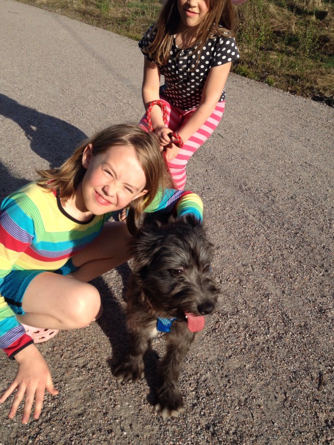 Ja, och även om rumsrenheten behöver en smula arbete så har hon plockat upp andra saker sanslöst fort. Hon går redan så fint i koppel att barnen kan hålla i henne till exempel. Och även om hon är blyg och lite rädd, så är hon nyfiken och villig att lära. Det hoppas jag att vi kommer riktigt långt med!