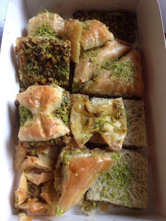 Jag (glatt fnissande): Asså jag måste bara ta en bild på all den här baklavan.
