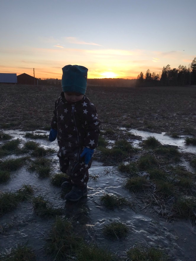 Vi är ute i solnedgången efter dagis och inspekterar ägorna. Man kan ha det väldigt mycket sämre.