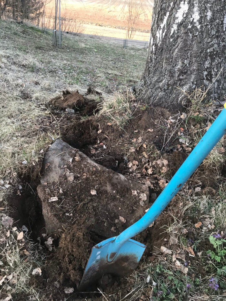 Nästan lika symbolisk som blommorna som kommer fram mitt i gräsmattan där jag slängt dem, är stenen vid Gabriels gunga. ”Ett ögonblick, älskling, mamma ska bara lite snabbt ta bort den här stenen”, sa jag blåögt och felaktigt när Gabriel ville gunga. Så här har det gått med de flesta små saker jag lite kvickt har tänkt ordna undan på sistone…