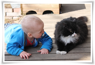 Katt hittade en ny kompis. Eller. Alltså han hittade ett barn som han tolererade, främst för att barnet i fråga var väldigt nöjt med att bara vara nära, inte på.