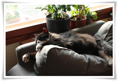 På kvällen städade några av oss. Katten på bilden har inget med städinsatsen att göra.