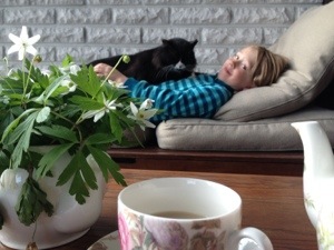 065Flytten till landet var perfekt. Katt är så lycklig här. Han har till och med lyckats fånga några möss som han med oerhörd stolthet visat upp. Han rullar sig i gräset, i gruset, i vår säng och njuter i fulla drag av ytorna och dofterna. Han ligger på min dator när jag ska skriva och han har ett sjätte sinne för vilken bok jag tänkas behöva och hinner sätta sig på den i tid. Det här är kattliv när det är som bäst.IMG_6989Så upptäckte vi en knöl på Katts hals. Den störde honom inte. Han älskade fortfarande friheten, gården, livet. Men nu har den växt. En kväll kom han in till mig och lät hes, tung i andningen. Att ligga i min famn och spinna har förlorat sin glans när spinnandet gör det svårt att andas. Att vässa sina klor på mina ben är för tungt. Att njuta av livet är svårare. I snart 9 år har han varit med mig, den där katten ingen ville ha och som ingen trodde skulle leva särskilt länge till. 9 år har jag fått med min vän. Nu är det dags att ta tunga beslut, dags att hjälpa honom på det sista sätt som återstår. Visa honom att vi älskar honom så mycket att vi kan låta honom få somna när han nu har blivit för gammal och trött. Jag vet bara inte hur jag ska klara mig utan honom.Iphone 364