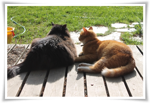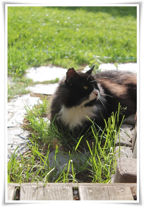 Så flyttade vi ut i förorten och Katt fick börja gå ut. Och som han njöt! Hela sommaren var han ute och vi såg honom knappt mer än när han kom in och ville ha mer mat och kärlek innan han gick ut igen. Hans största problem var att han emellanåt måste flytta sig när det blev för varmt i solen.
