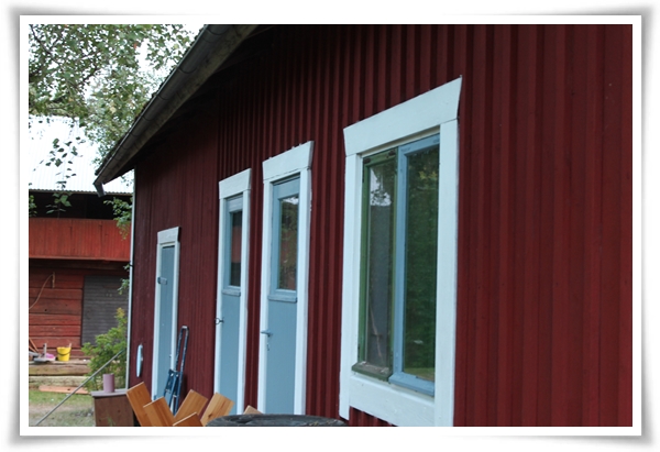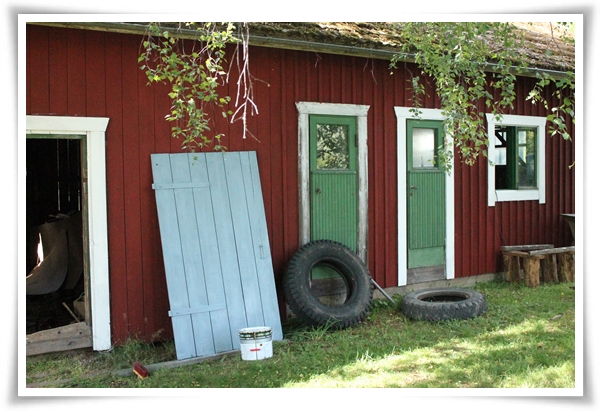 Den här sommaren har vi målat som aldrig förr. Att måla gamla hus är förstås inte bara att piffa upp med färg utan också att skydda träet och förlänga dess livstid. Första penseldraget på en gammal vägg känns nästan sentimentalt, och jag var duktigt nervös när jag målade om storhusets dörrar. Tänk, där har de varit i 100 år och så kommer jag och blaskar färg på dem. Färgen sjunker in i träet. Det finns ingen återvändo. Gjort är gjort och så vidare. Men även om det med särskilda saker (som dörrarna) känns nervöst så är det också välbehövligt skydd och livets gång.