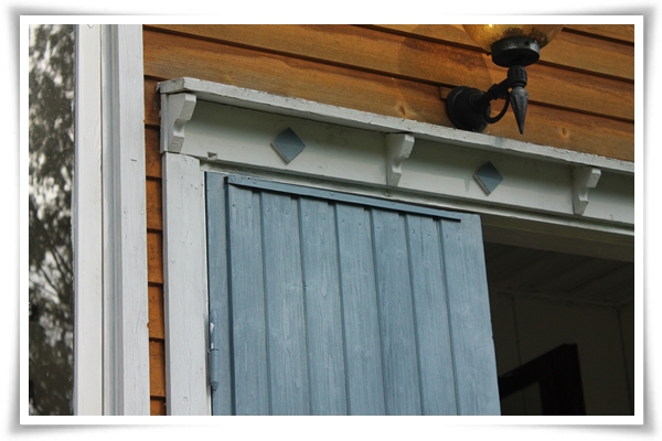 Efter att ha tvekat länge målade vi även storhusets dörrar blå och nu när vi har vant oss lite är vi sjukt nöjda. Ännu finare kommer det att bli sedan när vi får in spröjsade fönster till verandan.