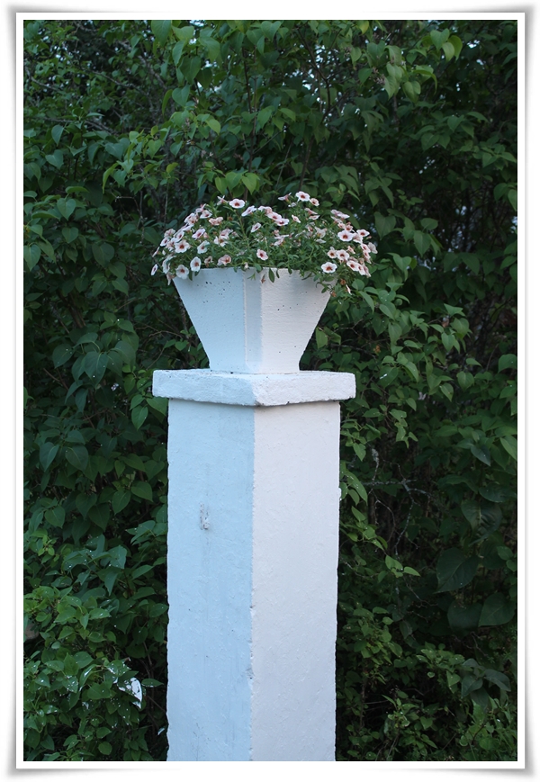 Maken rätade upp stolpen (för honom var det bara att liksom hugga i och lyfta den på plats) och kalkmålade. Jag fixade nya blommor. Förändringen är total.