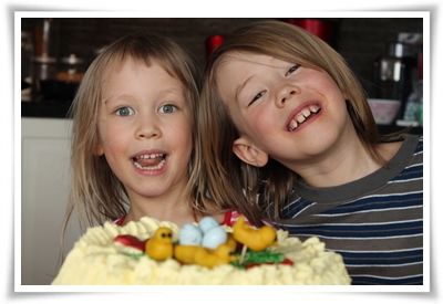 Barnen fick helt enligt eget tycke dekorera (kockerera, som Tilda säger) påsktårtan och sällan har den väl varit vackrare!