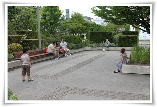 Utanför vårt ljuvliga hotell Strand fanns det studsmattor sänkta i trottoaren. En hit.