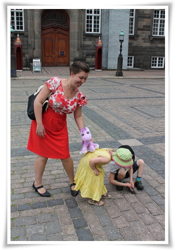 Vi tittade på Absalons ruiner och drottningens representationsvåning. Jag var tvungen att visa min handväska innan vi fick gå in. Jag påpekade att den kanske såg liten ut men att den var som Mary Poppins väska och att jag därmed lätt kunde få plats med en av deras enorma statyer, men att jag förmodligen aldrig skulle hitta den igen om jag lade den i väskan. Jag fick ta med väskan ändå. Tyvärr hittar jag inte statyn igen. Vilho och Tilda däremot hittade massor med spännande små skärvor, stenar och fossil på borggården. Tilda konstaterade att ”vi tar hem dem, men berätta inte för drottningen”. Jag retades kanske lite.