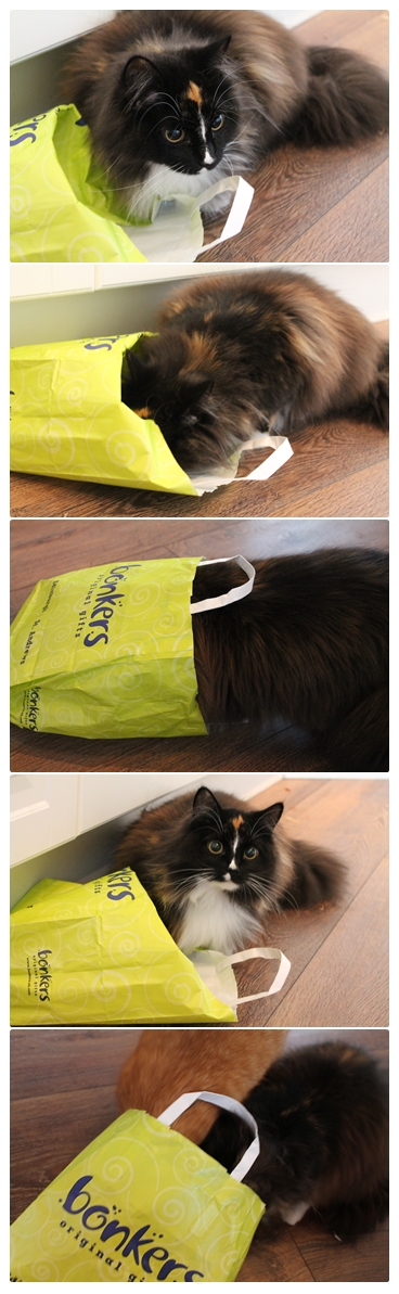 I välkommen-hem-present fick Poppy en papperskasse. Man behöver inte kunna se för att uppskatta papperskassar.