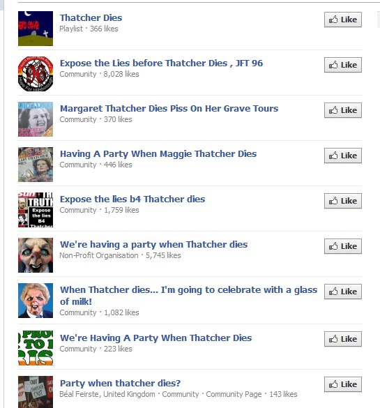 Om det nu var någon som mot all förmodan inte trodde att kvinnor som tar för sig får ta fruktansvärda mängder skit kan hen med fördel ta del av vad som för tillfället utspelar sig på sociala medier. Margret Thatcher har avlidit och nätet fylls av uppmaningar om hur man bäst ska fira att häxan är död. Om vi för den här gången har ganska mycket överseende med hur oerhört respektlöst det är att fröjdas över att någon dött (någons mamma, förresten) och istället fokuserar på den veritabla shitstorm som utbrutit. Den shitstorm som inte kommer sig av att särdeles många av dem som sprider bilder på Thatcher som halvt förmultnad zombie eller som häxa  i dag egentligen har ett personligt förhållande till Thatchers politik, eller ens har levt under hennes styre, utan kommer sig av att hon var kvinna med makt. På Facebook finns det en uppsjö communities och sidor för den som vill veta var de bästa Thatcher-är-död-och-vi-ska-festa-ställena finns.