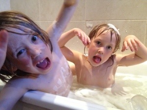 Vems sida av badkaret som har mest och fluffigast bubblor.