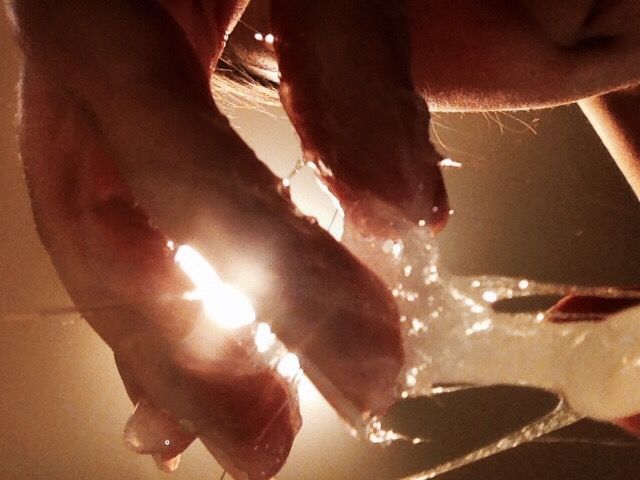 När massan börjar bli seg och samarbetsvillig (jag har själv inte uppnått det senare av dessa, men jag har läst att det bör hända) smetar man ut den på huden.