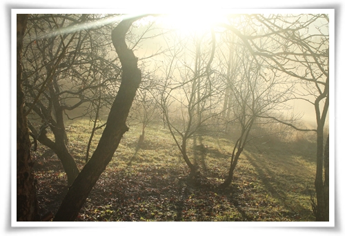 Jag är så kär i det här stället! De senaste dagarna har det varit tät dimma, både morgon och kväll. Våra gamla skruttiga byggnader och krokiga äppelträd bäddas in i mjukt fluff. Nedslitet, bortglömt och underskattat får liv. Och när solen går ner över fältet och de sista strålarna strilas genom dimman är det så vackert att hjärtat nästan spricker.