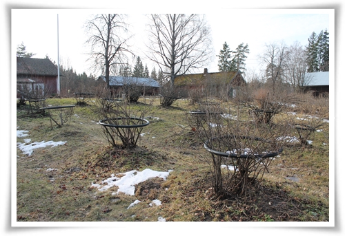 Jag har hängt upp äppelkvistar på tork, så att kaninerna har något att knapra på i vinter.