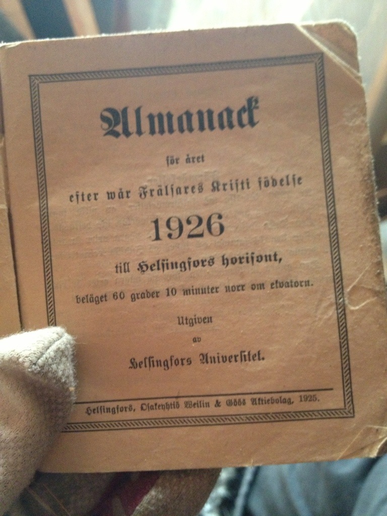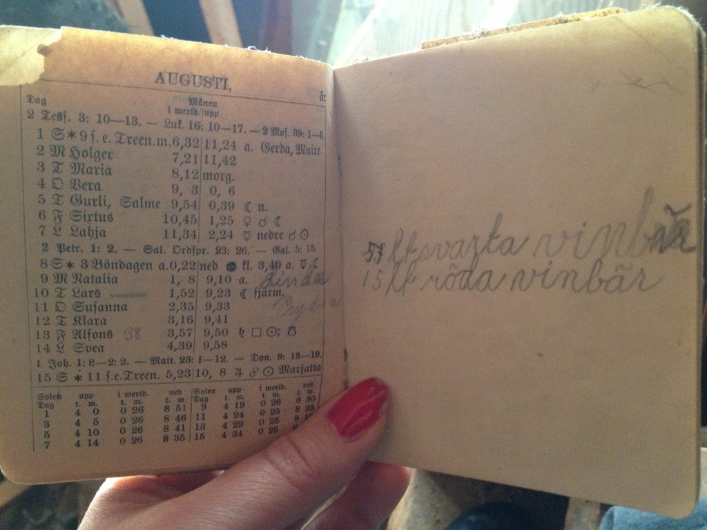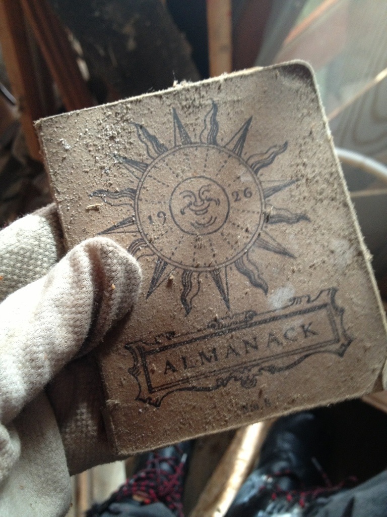 Sedan släpade vi ner en gammal träsoffa som vi hittade på vinden. Bordet på bilden här ovanför står för tillfället i köket som det där bordet man lägger ifrån sig alla grejer på. Ett riktigt prima gammalt bord som stod på verandan, täckt med en allt annat än ny vaxduk, när vi kom hit.