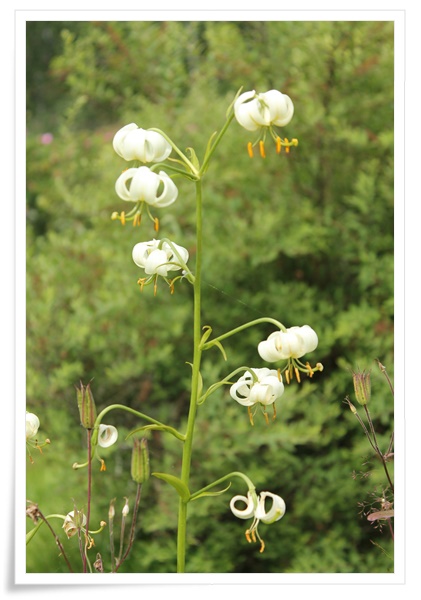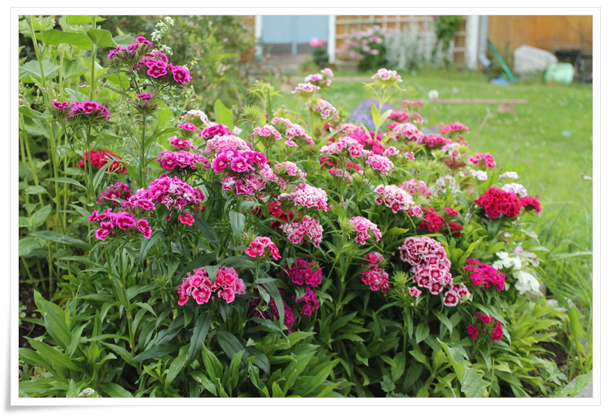 På väg upp mot storhuset igen växer buskage av borstnejlikor som jag har sått.