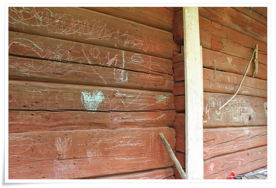 På lidrets gamla slitna vägg har Tilda gått crazy med sina kritor.
