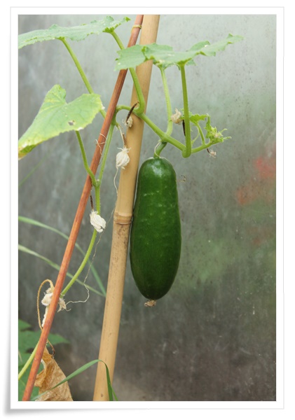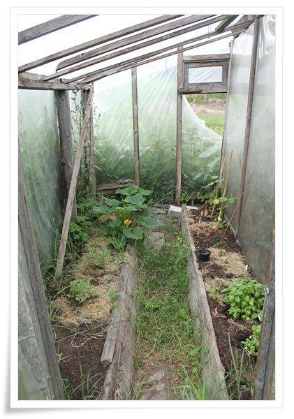 Växthuset är fult som stryk och halvt sönderfallet, men det fyller ändå sin funktion. Slanggurka, gott folk.