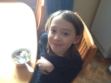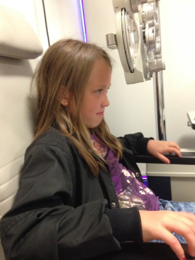 Så vi bokade tid hos optikern och gick dit igår. Tilda fick en sån där konstig mojäng framför sig och blev ombedd att läsa översta raden. Sakta stakade hon sig fram. Nästa rad? Nej, den är suddig. Hon skruvar på sig. Pratar med sin tysta röst. Optikern mixtrar med någonting och Tilda pekar uppgivet på tavlan och säger ”Är det bara jag, eller är det där liksom helt suddigt, huh?”. Jag skrattar så jag nästan trillar av stolen och Tilda fnittrar hejdlöst.