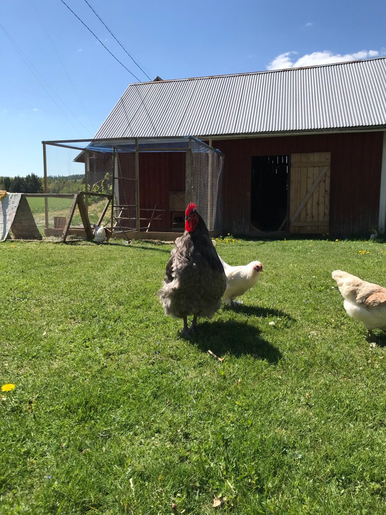Den här gården är min räddning. Jag tror inte alls att det är så att jag räddar huset – det räddar mig. Hönsen. Kaninen. Trädgården. Allt liv som spirar här. Det är en verklig lisa för själen. Och visst älskar jag barnen också. Mer än livet självt. Men om vi säger som så, att tonårsbarn är möjligen karaktärsdanande för en ensamstående förälder, men de är fanimej inte självförtroendehöjande.