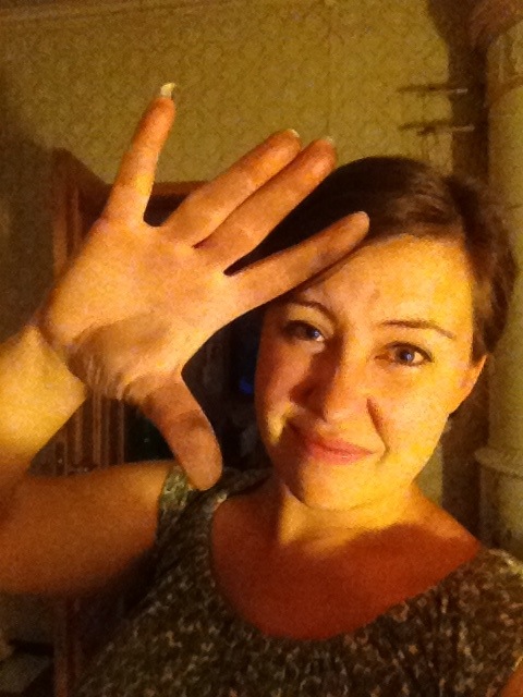Senare på kvällen gav jag mig ändå på att måla väggen också. Därefter krampade händerna så att fingrarna fastnade i misslyckad Vulcan-hälsning.
