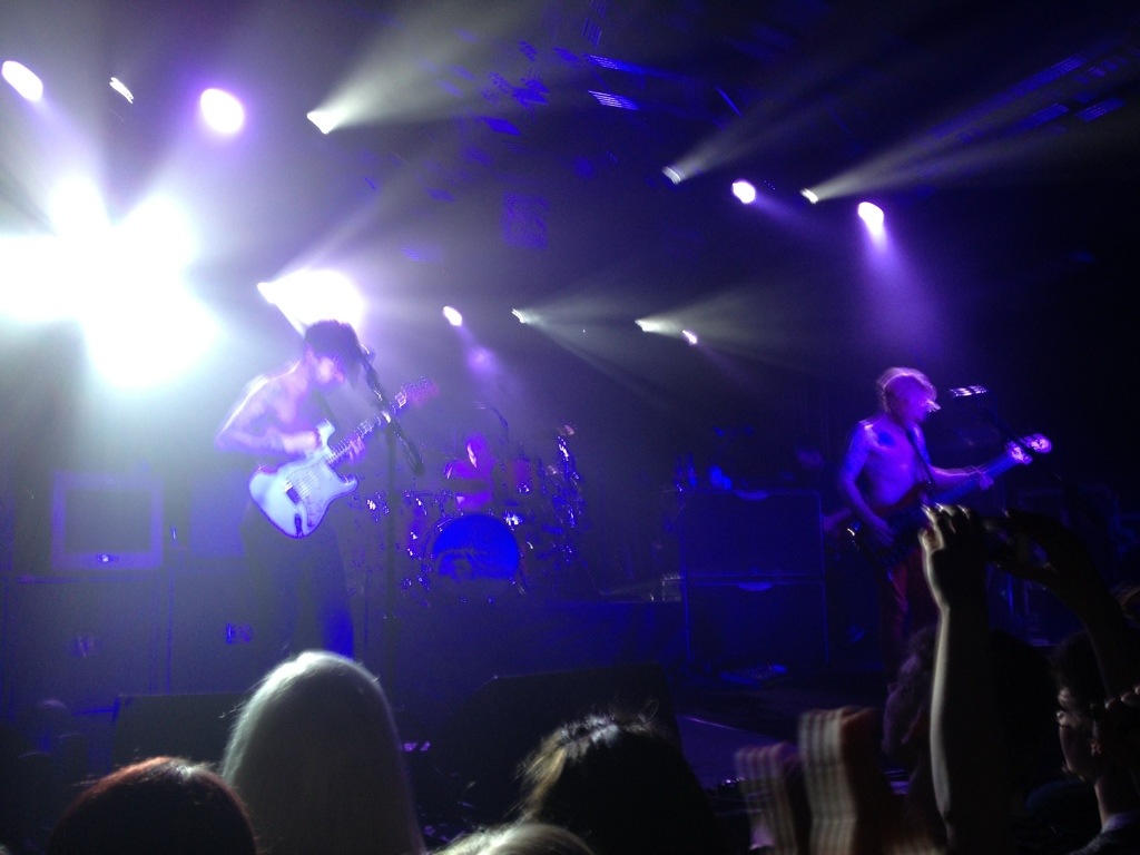 Kuriosa: Det hjälper om man inte bryr sig om att platserna längst fram är för patetiska fjortisar. Det var bara ett staket, en ordningsvakt och några ungdomar med bara armar, svartbågade glasögon och mössa mellan mig och scenen. Följande bilder är tagna med min telefon.